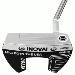 The newly re-engineered INOVAI 6.0 Spud was designed by Sam Bettinardi to perfect our most successful M.O.I. (Moment of Inertia) mallet to date. With two years of Tour feedback, Sam refined the 6.0 with a 5% smaller head from heel to toe, offering a sleek, more compact design than its predecessor. The 358 gram 6.0 features a precision-milled Roll Control face from 303 Stainless Steel and a 6061 Military Grade Aluminum body, with a new Stealth Black anodized finish. The slant neck offers a ¼ toe hang with a straight shaft, aimed at enhancing the natural flow of the putting arc for maximum forgiveness throughout the stroke. The INOVAI 6.0 has consistently been in play by multiple Bettinardi staffers on Tour since its initial release in 2020.