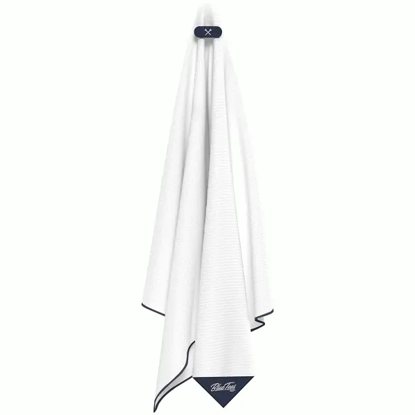 TheΒ Blue Tees Utility Golf Towel is the ultimate golfΒ towel the Blue Tees golf towel is designed with a strong magnetic strip to conveniently clip to carts and golf clubs. Combined with the built-in rubber groove cleaner, makes it the ultimate tool for keeping your clubs look as new as the day you got them.