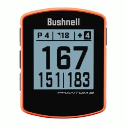 TheΒ Bushnell Phantom 2 Handheld Golf GPSΒ comes preloaded with more than 38,000 worldwide courses and features a larger display than the previous generation, making it even easier to read.Β Additionally, the display is transflective to provide high visibility, even in bright sunlight.Β To help you pull the right club, the Phantom 2 provides front/center/back yardages, as well as offering a green view with a moveable pin placement to give you a more precise distance to the flag.Β To ensure that you donβt pull the wrong club, this GPS unit is able to display up to 6 hazard distances per hole. Whether you like to ride, or prefer walking, the Phantom 2 has you covered.Β For riders, the integrated BITE magnetic mount easily attaches to metal surfaces on the cart, and a carabiner conveniently clips to a walkerβs belt or bag accessory loop.