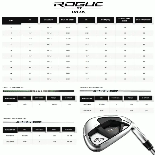 - Refined game-improvement shaping and the strongest lofts in the Rogue ST family