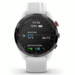 TheΒ Garmin Approach S62 Premium GPS Golf WatchΒ is packed full of so many features, it may as well include a kitchen sink.Β The large 1.3β³ screen is 17% larger and easy to read, even in the sunlight.Β The watch is preloaded with more than 41,000 courses and a virtual caddie, which factors in wind speed and direction, then suggests a club to hit based on the distance you typically swing with that particular club.