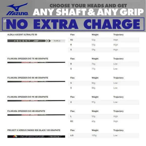 Please Note – All Mizuno custom club orders will be submitted to Mizuno for assembly and will be subject to component availability and build lead times