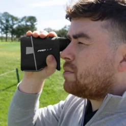 The Shot Scope PRO LX is a highly accurate laser rangefinder packed with features to ensure you hit your target every time. A comfort stability grip, combined with Rapid-Fire detection and Target-Lock vibration feedback, will give you the confidence to fire at every flag. Red/Black dual optics and x7 magnification ensures the display on the PRO LX is clear and visible in all conditions. Featuring a switch to turn Adaptive Slope technology on or off, the PRO LX is compliant with tournament regulations. Distances are available in yards or meters and are accurate to 1 yard.