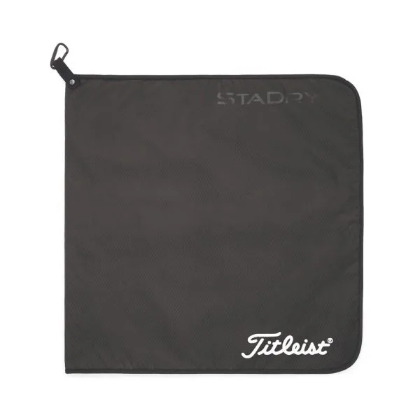 The materials used on the TITLEIST STADRY PERFORMANCE GOLF TOWEL are bleed-free and can machine washed to keep the towel looking clean and fresh. A carabiner clip has been affixed to the towel to provide a secure attachment to the playersβ golf bag. The waterproof membrane helps to keep the microfiber interior dry for maximum cleaning efficiency.