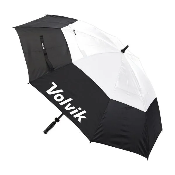 The Volvik Double Canopy Golf Tour Umbrella. is featuring a wind resistant double canopy and robust frame that can battle the strongest of windy weather conditions. Additionally with a sleek fibreglass shaft and non-slip moulded handle the Volvik golf umbrella will keep you dry whilst out on the course.